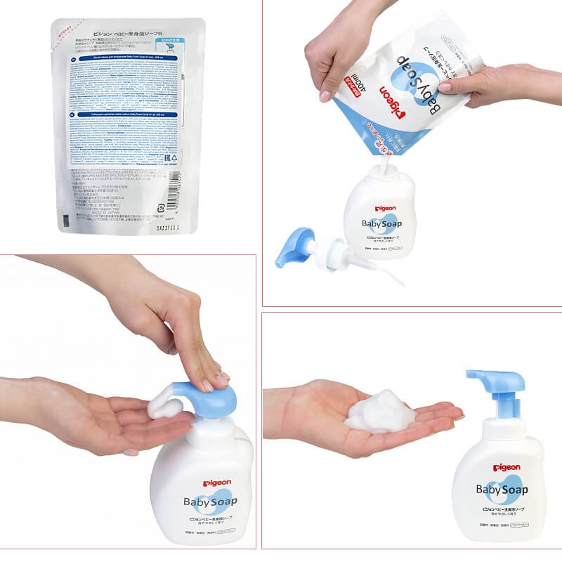 Дитяче мило-пінка Pigeon – для купання малюка від народження. Із приємним квітковим ароматом. Запасний економічний блок основного засобу у м’якій упаковці. Просто перелийте його у флакон зі спінювачем!
