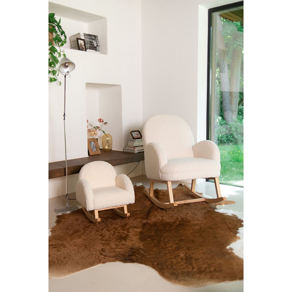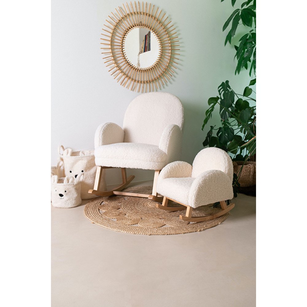 Це миле крісло-качалка для дітей ідеально підходить для відпочинку після довгого навчального дня! Крісло-гойдалка дуже зручне завдяки підкладці з надм’якої тканини Тедді. Крім того, воно допомагає тренувати рівновагу вашого малюка. Це крісло-гойдалка не тільки забезпечує комфорт, але й виглядає красиво завдяки своєму стильному, елегантному дизайну. Справжня дизайнерська річ в дитячій кімнаті.