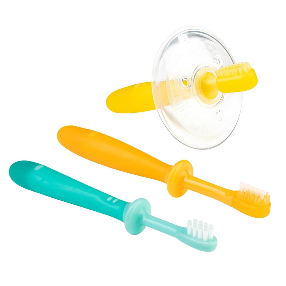 Цей набір є покроковою системою навчання дитини самостійного гігієнічного чищення зубів, починаючи з моменту появи його першого зубика. Він розроблений так, щоб відповідати віковим та фізіологічним особливостям дитини, що росте.