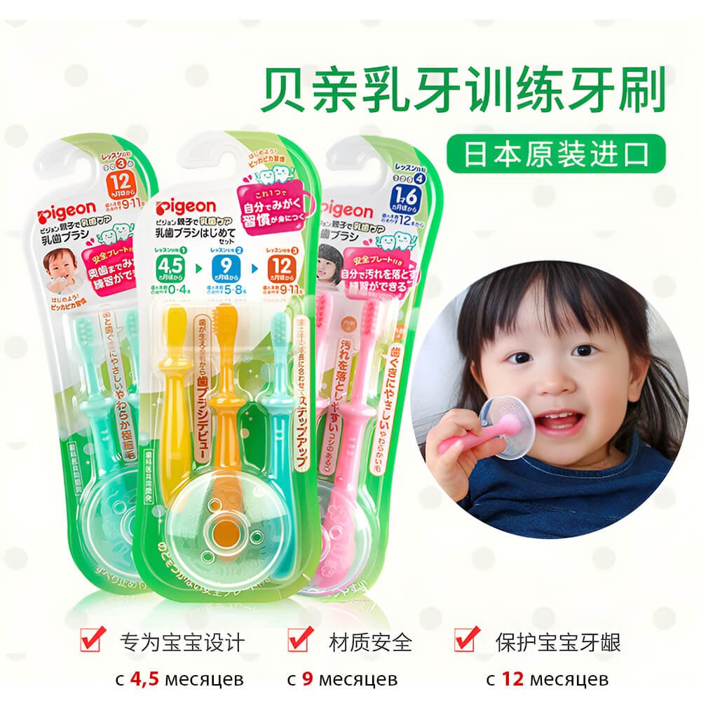 Набір дитячих зубних щіток, Pigeon – ідеальне рішення для введення у світ турботи про здоров’я зубів вашого малюка.