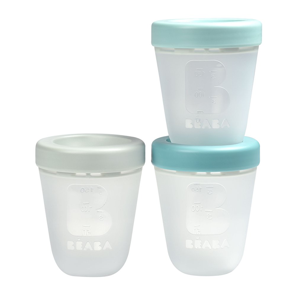 Силіконові контейнери – набір з 3 штук. Ідеальні як для зберігання, заморожування та розморожування дитячої їжі. Кришка контейнера легко та герметично закривається. Об’єм 200 мл. Контейнери для підігріву дитячого харчування в СВЧ-печі або Babycook (наприклад – арт. 912772, арт. 916300).