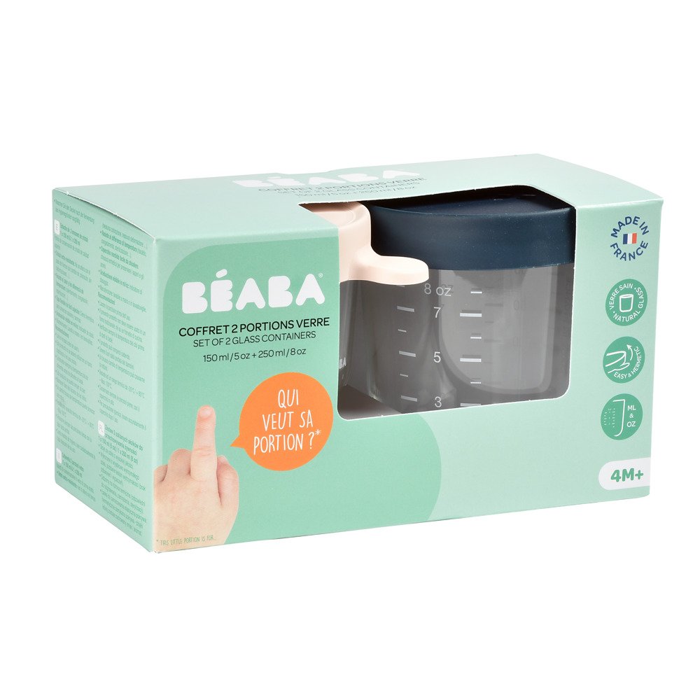 Набір Beaba складається з 2 контейнерів (150 та 250 мл) з чіткою мірною шкалою, м’яких еластичних кришок, які легко надягаються та дозволяють герметично закрити контейнер.