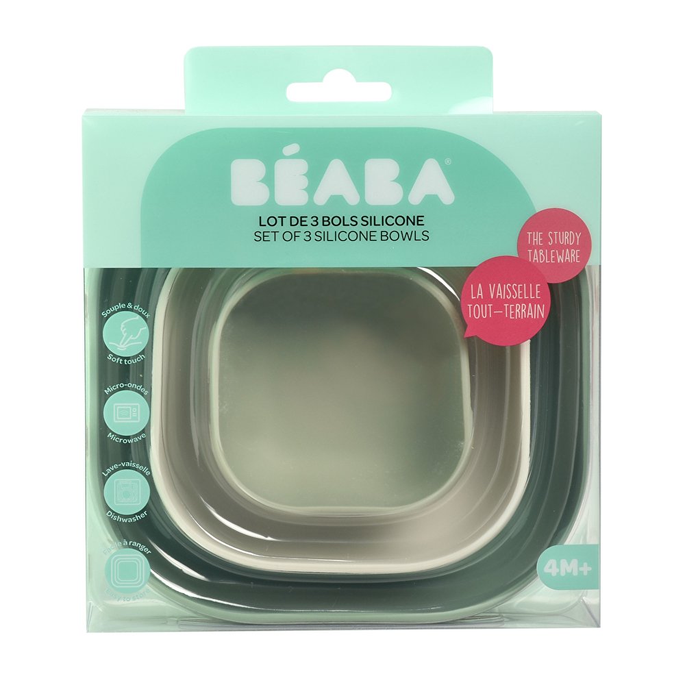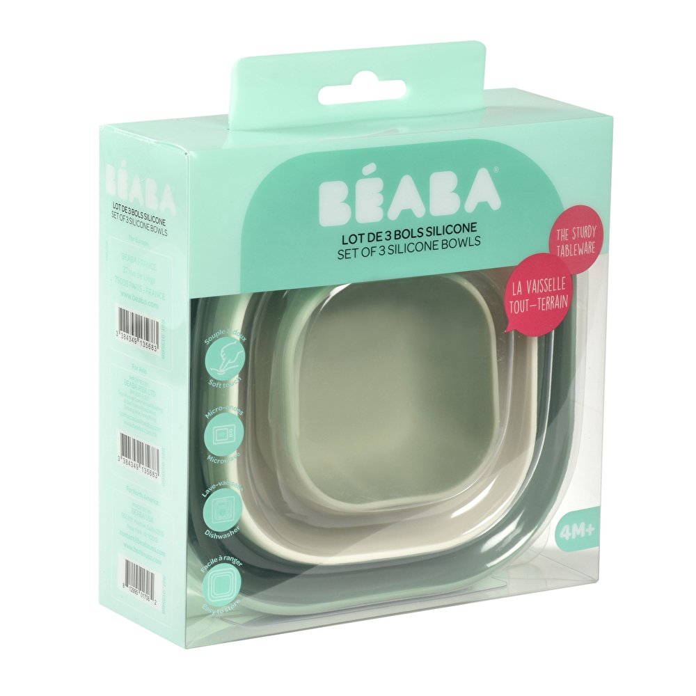 Всі предмети посуду виготовлені із високоякісного силікону, який не б’ється, не деформується та не містить шкідливих речовин. Силіконовий посуд підходить для використання в мікрохвильовій печі та морозильній камері, а також легко миється у посудомийній машині. Тарілки мають різну ємність та форму: це дозволяє подавати різні види їжі залежно від віку та апетиту дитини. Можна використовувати для малечі з 4 місяців і до старшого віку.