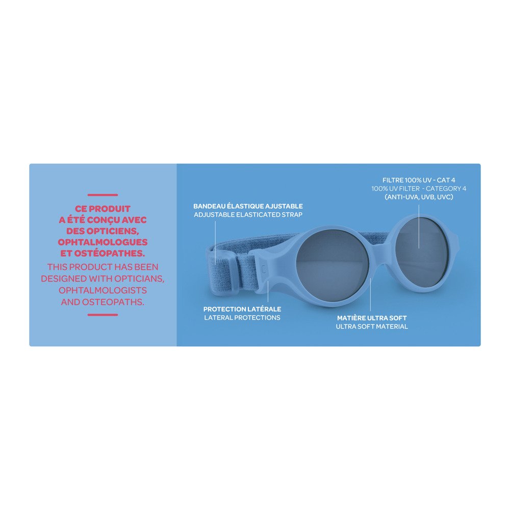 Сонцезахисні дитячі окуляри Beaba XS створені для самих маленьких. Лінза (UVA, UVB) – 4-я категорія. Можна використовувати з народження. В якості оправи представлений гнучкий ремінець з неопрена – легко одягати, коли малюк знаходиться в положенні лежачи, не тисне, і не заважає дитині.