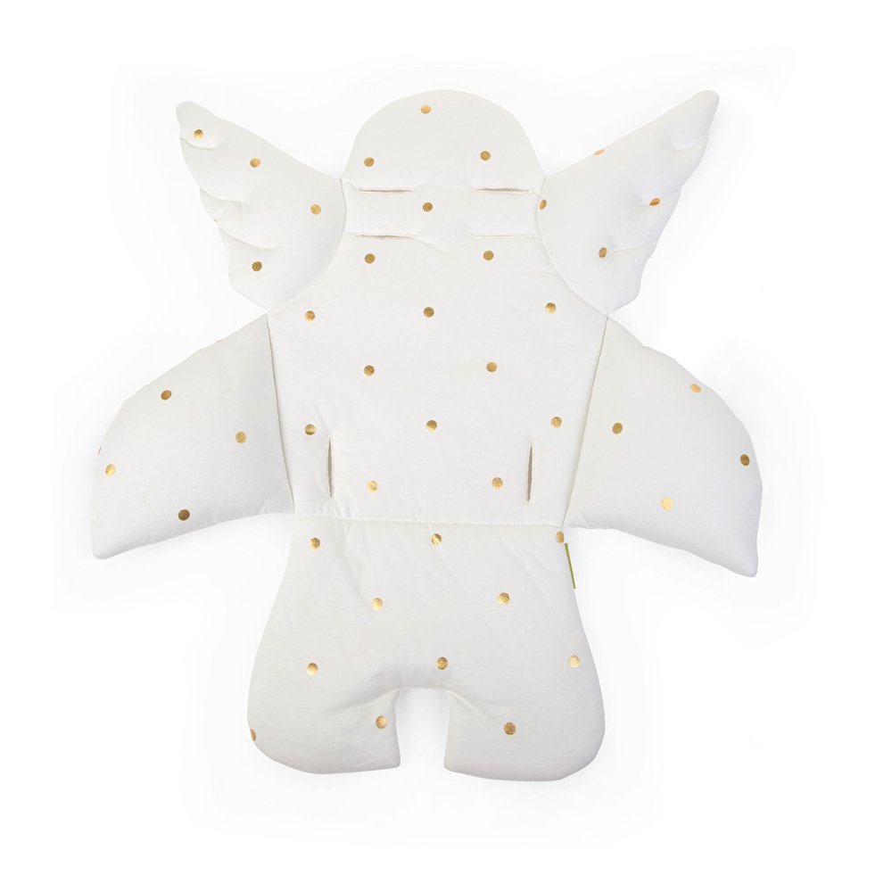 М’яка, зручна та гарна подушка у формі янгола ідеально підходить для малюків різного віку. Вона забезпечує додатковий комфорт під час сидіння на стільці, прогулянки у візку, або під час сну у колисці чи у ліжечку. Виготовлена з бавовни, наповнення – поліестер. Не викликає алергічних реакцій, зручна у використанні. Виріб оснащений отворами для ременів безпеки, які надійно і в той же час акуратно захищають дитину від падіння.