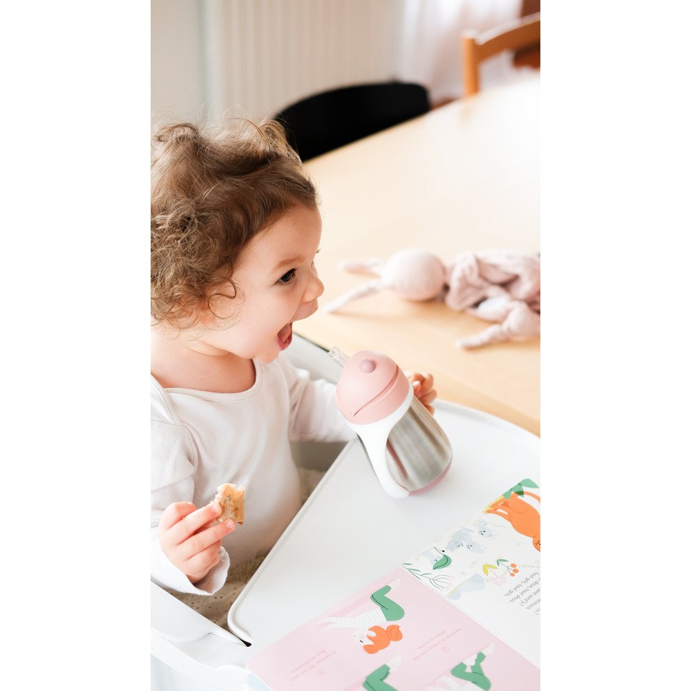 Знімні ручки, щоб малюкові було простіше утримувати чашку. Потім їх можна легко зняти. Завдяки подвійним металевим стінкам корпусу напій довше зберігає свою температуру.