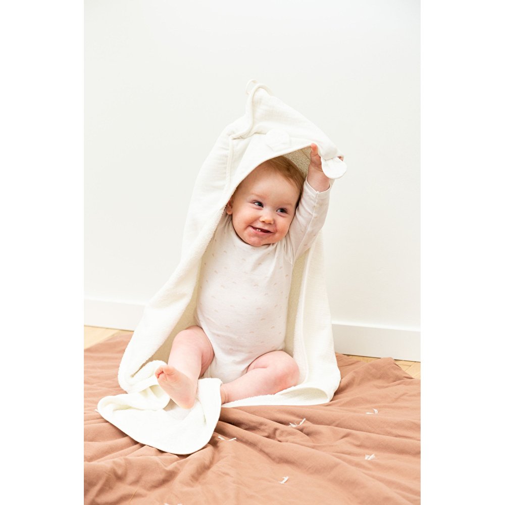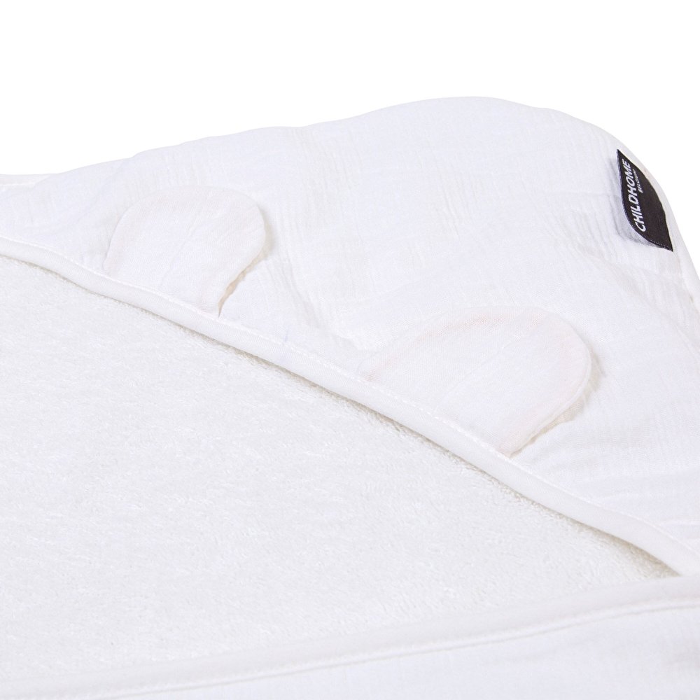 Рушник з капюшоном Childhome зігріє вашу дитину після купання. Чудовий дизайн та матеріали – виготовлений з мусліну та з малюнком плюшевого ведмедика, вишитого м’якою махрою. Крім того, рушник має два милі плюшеві вушка.