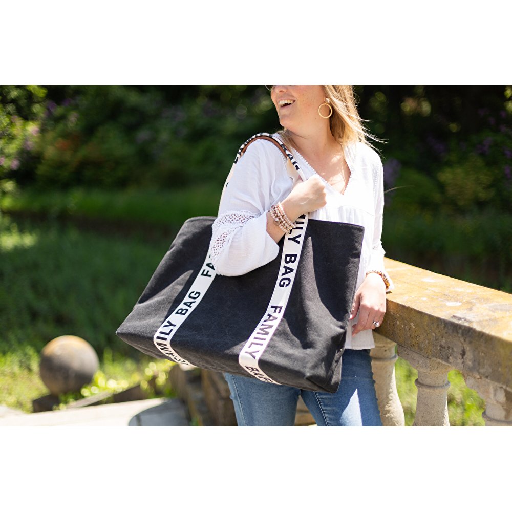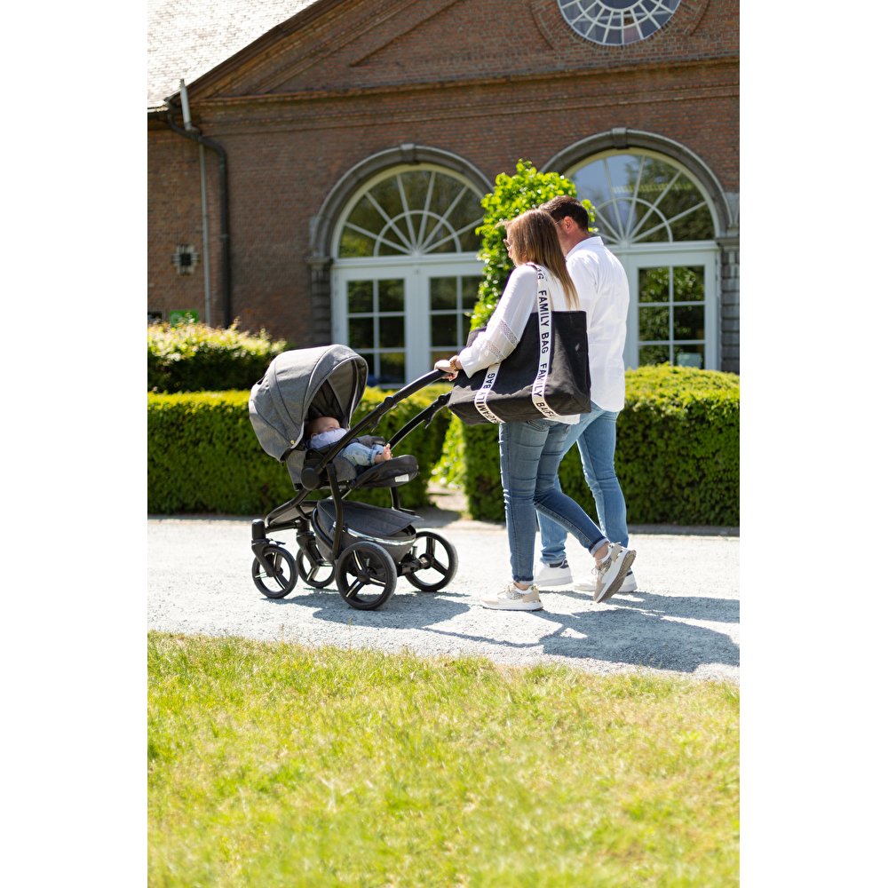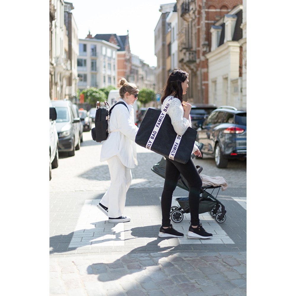 Childhome – Family Bag сімейна сумка для мам та тат. Наймоднішої і найпопулярнішої колекції сумок Signature – Canvas. Відтепер насолоджуйтесь численними сімейними поїздками з додатковим задоволенням. Тепер ви можете взяти з собою все необхідне для всієї родини у модній сумці! У просторій дитячій сумці чорного кольору всі предмети будуть у безпеці під час кожної сімейної подорожі. Це робить ці часи ще кращими. Кишеня на блискавці всередині та додаткова косметичка дозволяють зберігати дрібні предмети окремо. Сімейну сумку можна відкривати та закривати за допомогою зручного магніту. Вона є дещо меншою по розмірах в порівнянні з Mommy Bag.