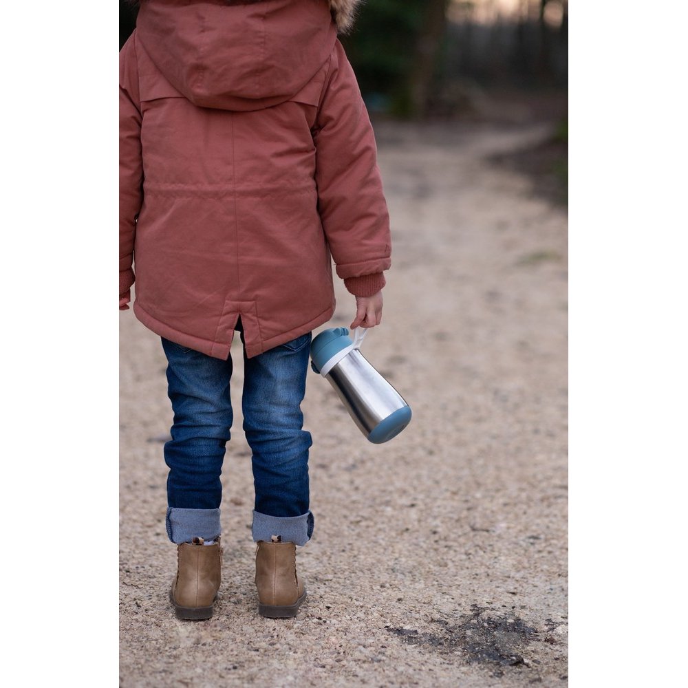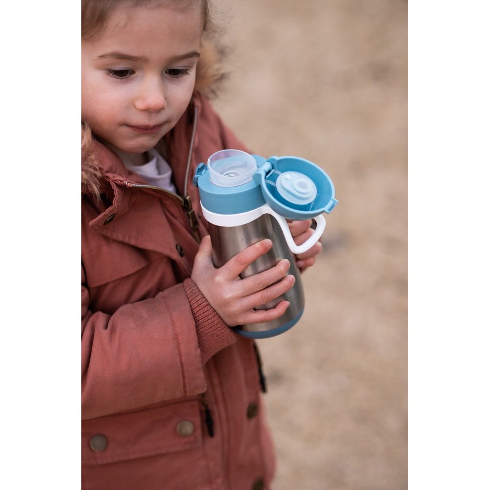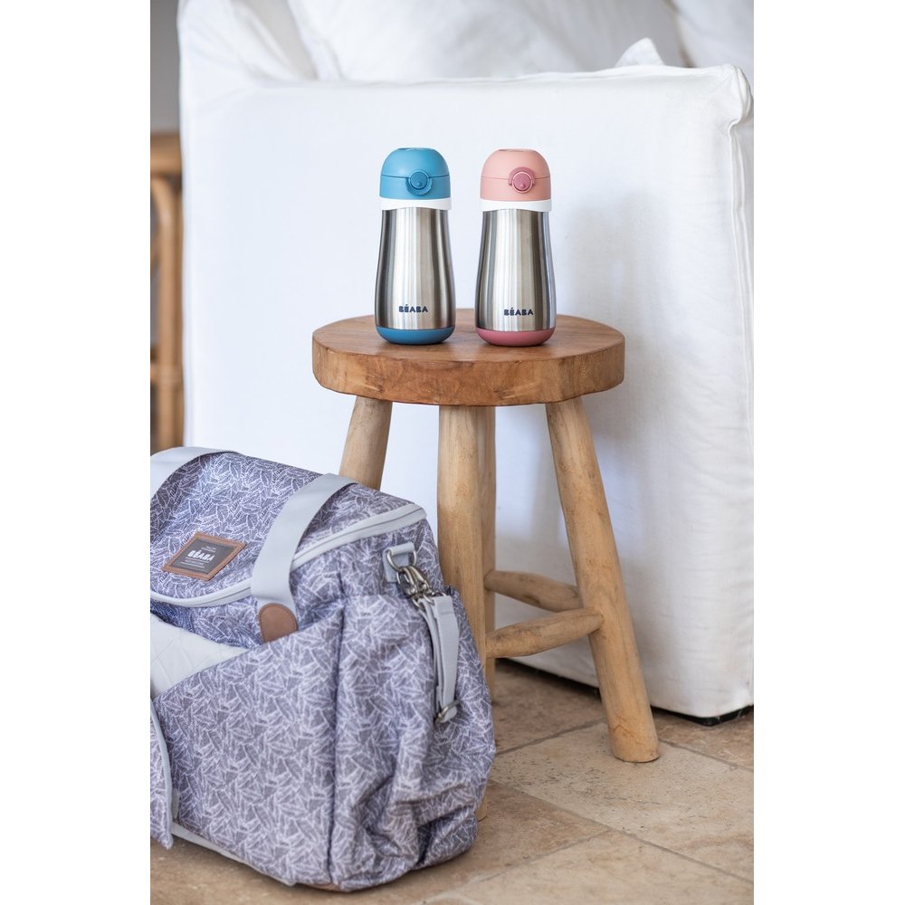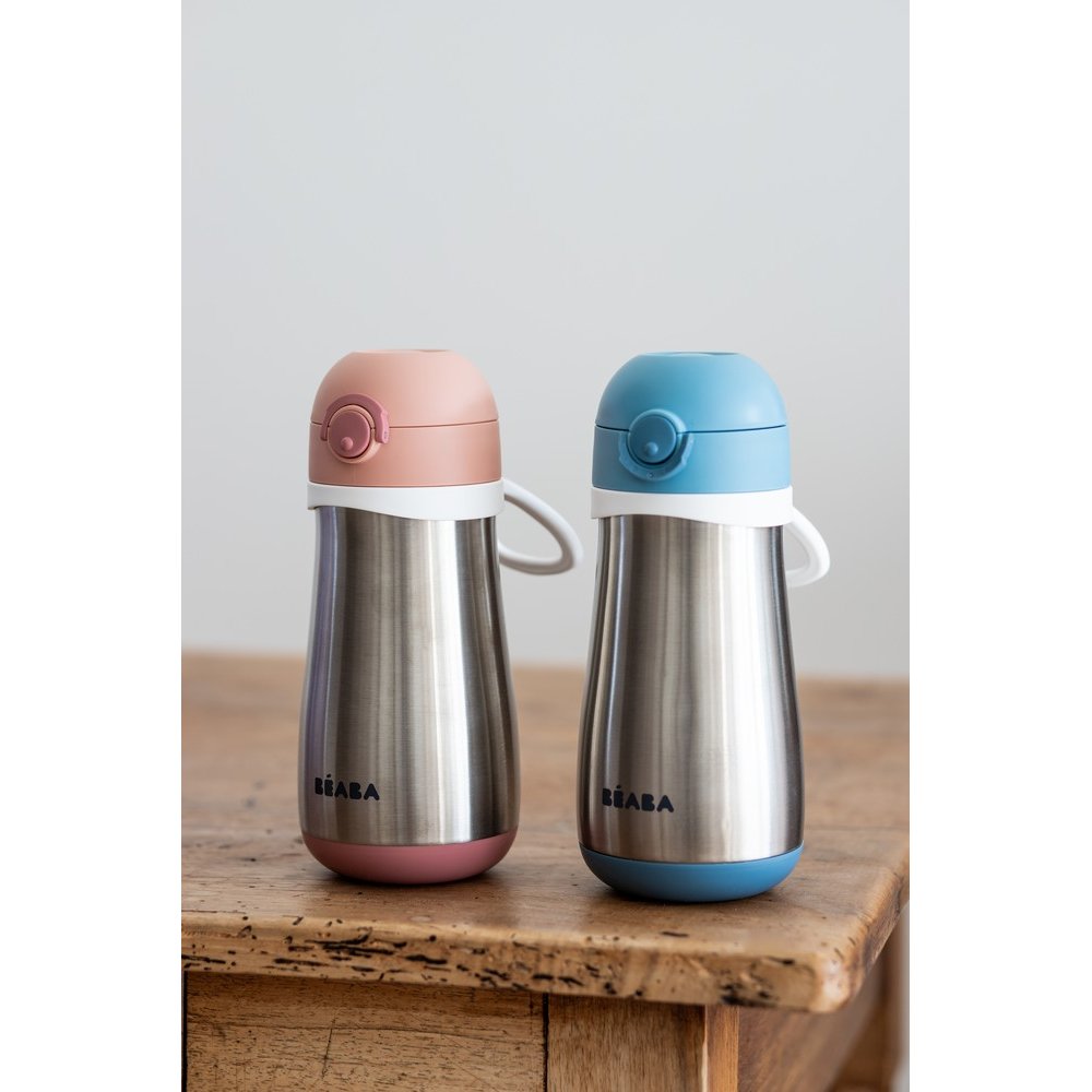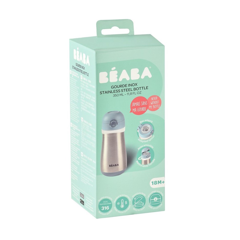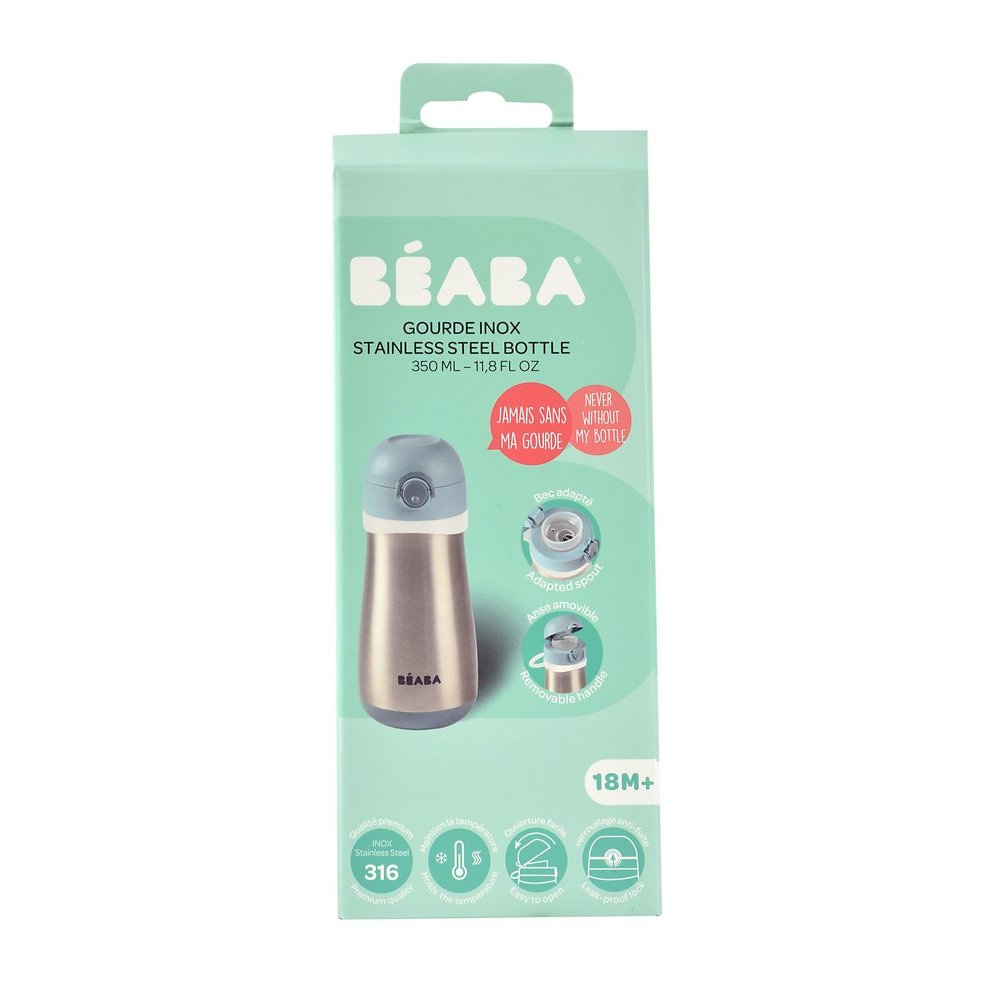 Металевий термопоїльник Beaba 350 мл з нержавіючої сталі оснащений подвійними металевими стінками, ідеально підходить для використання вдома і на вулиці.