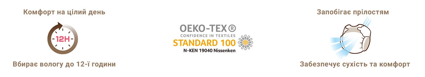 - Спеціальний абсорбент перетворює вологу на гель, що забезпечує швидке поглинання