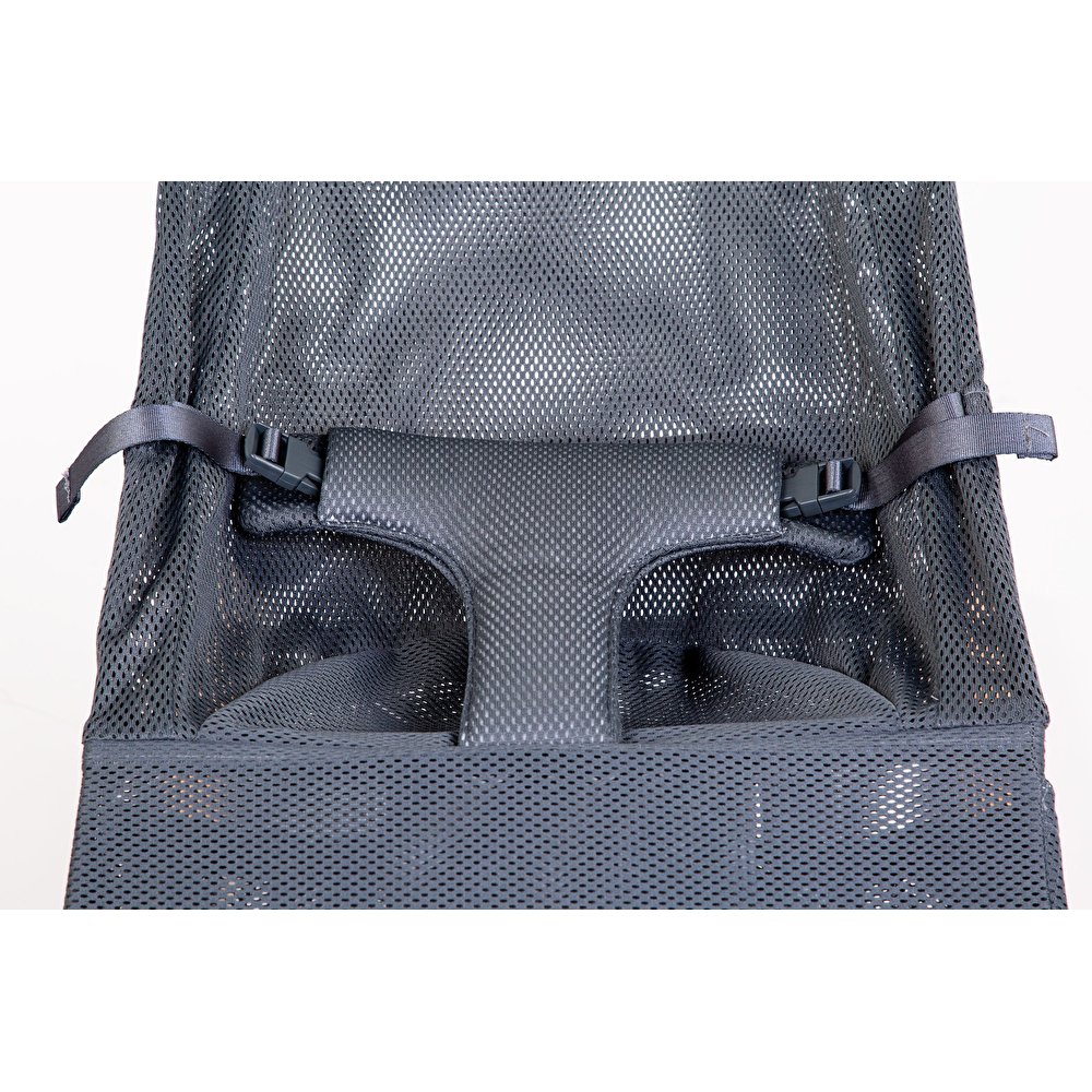 Хребет дитини не буде піддаватися додатковим навантаженням, навіть при тривалому перебуванні в одному положенні. Додатковим елементом є м’який ремінь, який захищає малюка вагою до 9 кг від випадкового падіння. Приємний бонус – наявність компактного мішечку для іграшок або предметів з догляду за дитиною.